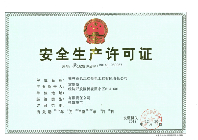 end-->安全生產(chǎn)許可證 -榆林市長江送變電工程有限責任公司"> 123,123